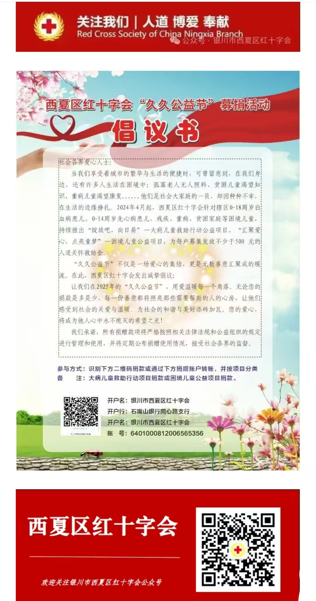 银川市西夏区红十字会“久久公益节”募捐活动倡议书