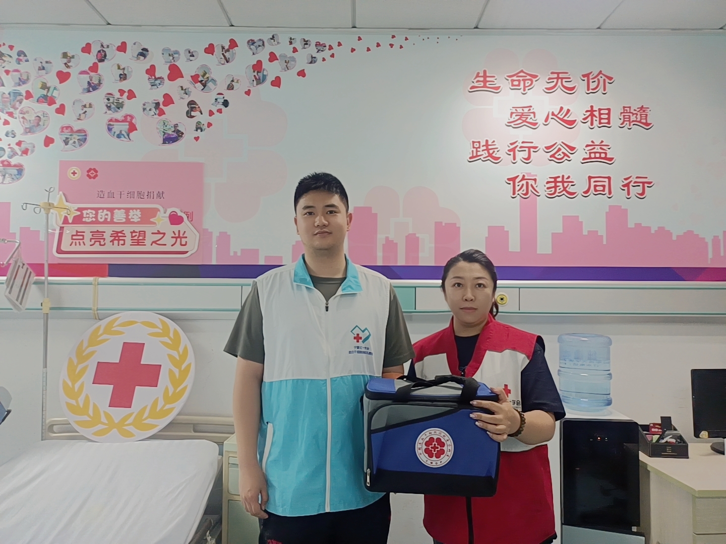 为确保捐献顺利,小张主动配合完成了高分辨检测、捐前体检等流程。采集期间,银川市红十字会工作人员全程陪同,为他送上鼓励与关怀,现场见证这场跨越千里的生命接力。