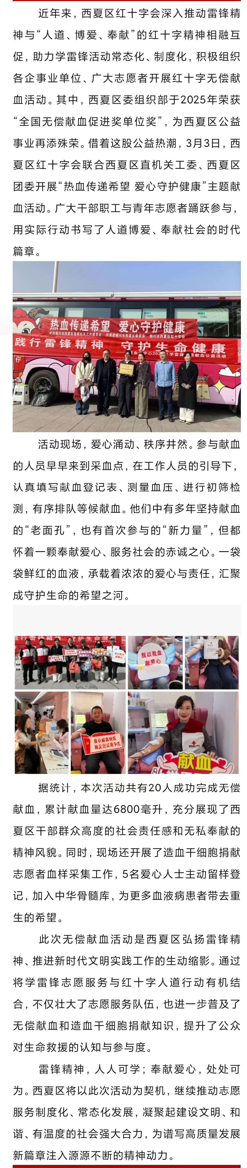 银川市西夏区开展“热血传递希望 爱心守护健康”主题献血活动