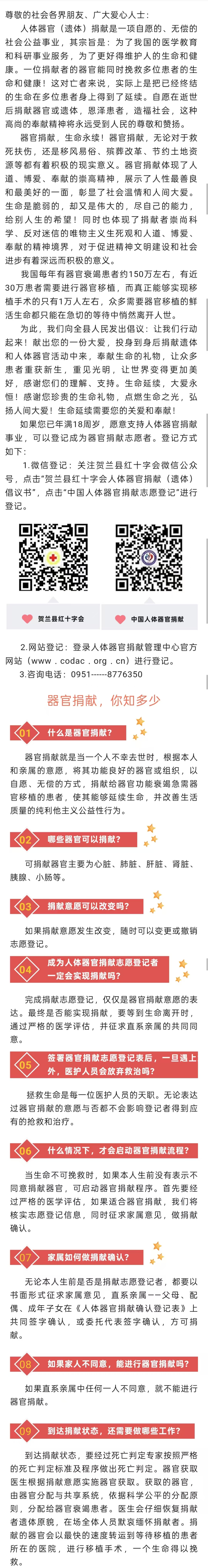 贺兰县红十字会人体器官(遗体)捐献志愿者登记倡议书
