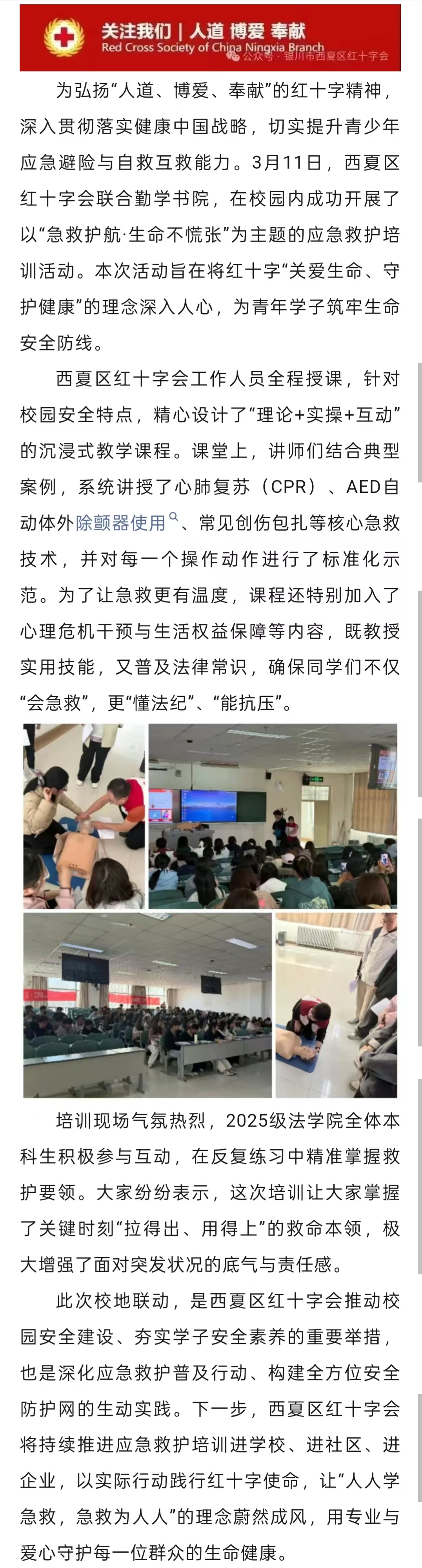 急救护航青春 守护生命安全——西夏区红十字会开展应急救护培训进高校