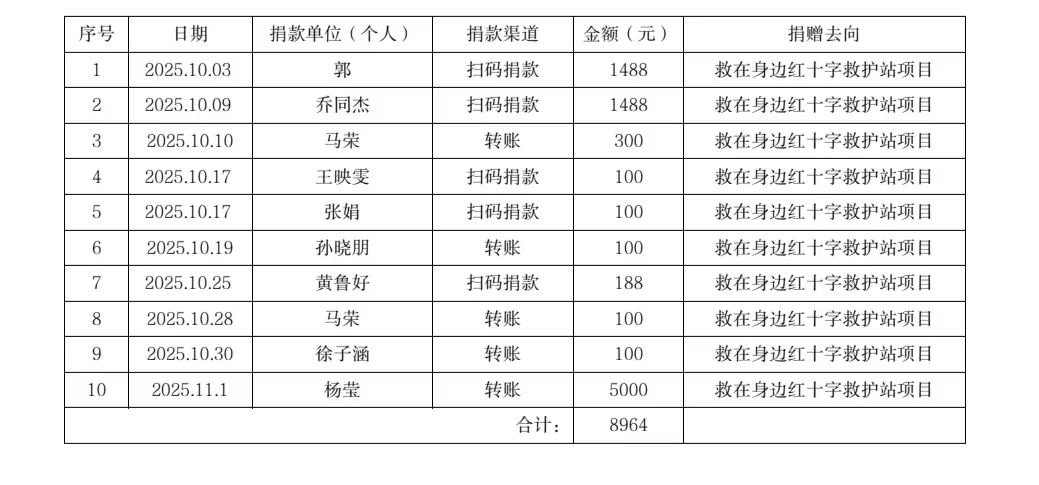 银川市红十字会2025年10月-11月接受捐款公示